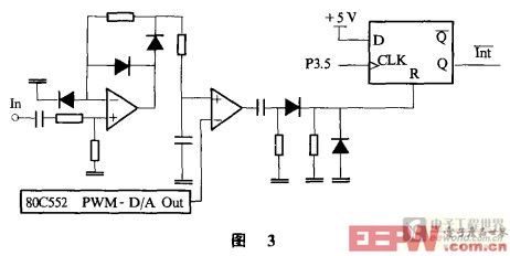 另外,為了防止干擾波及發射波寬度和多次回波的重疊對測量的影響,本設計在接收回波的電路中,增加了一個電平可變的門限,該電平由80C552的PWM脈寬調制端通過必要的接口電路形成的D/A轉換器的輸出提供。門限電平的高低應盡量使產生回波的中斷時刻發生在靠近回波波形的中心位置,以減小波形寬度對測量時間的影響。